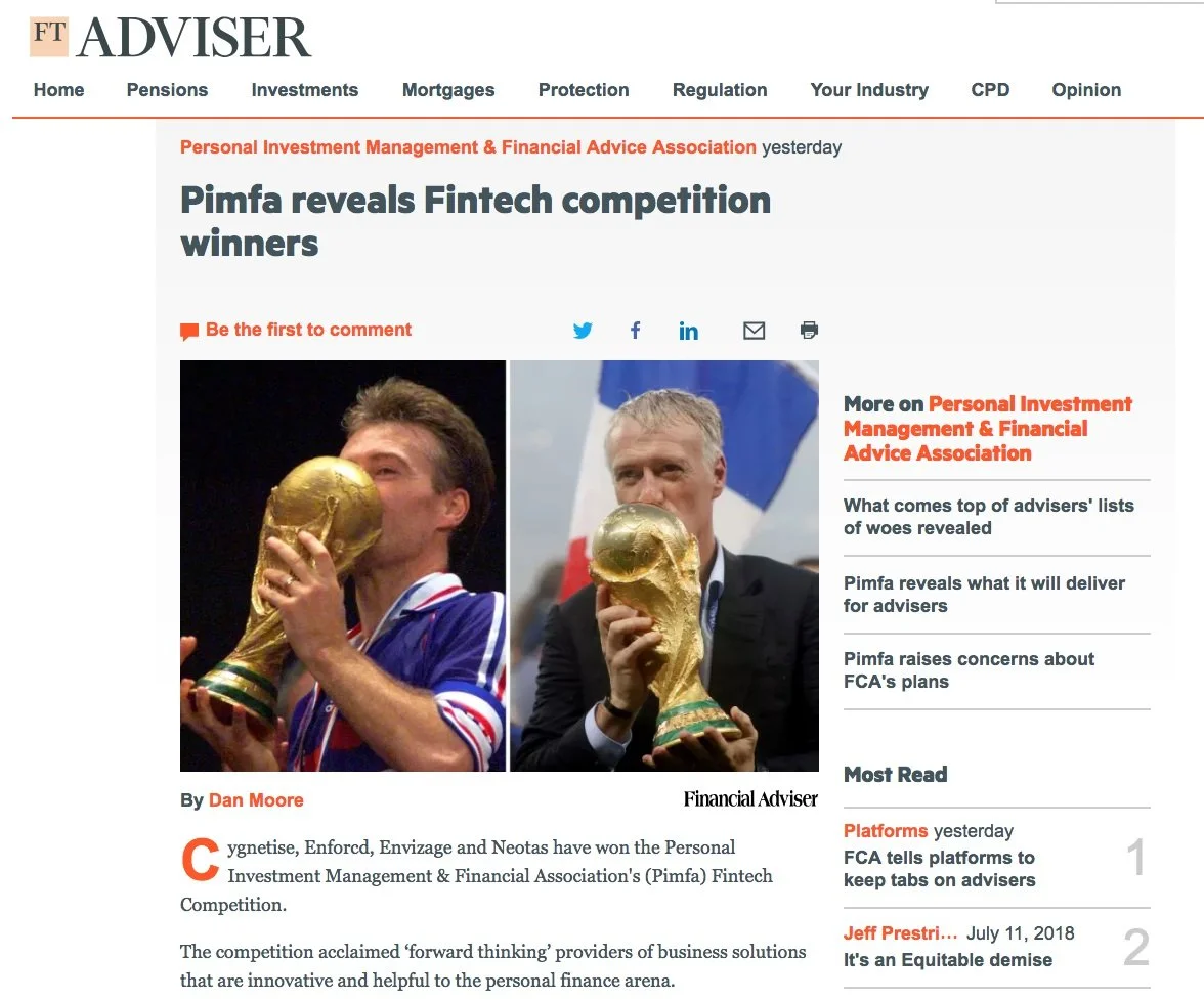 Cygnetise is proud to announce it was chosen as the winner of the 2018 Personal Investment Management & Financial Association's (PIMFA) Fintech Competition.